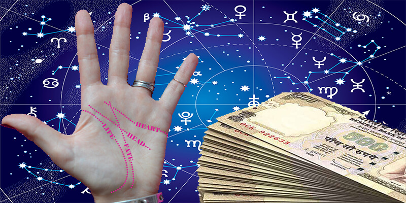 यदि उंगलियों मिलाने पर तर्जनी और मध्यमा के बीच छेद हो तो व्यक्ति को 35 वर्ष की उम्र तक धन की कमी रहती है। यदि मध्यमा और अनामिका के बीच छिद्र हो तो व्यक्ति को जीवन के मध्य भाग में धन की कमी रहती है। अनामिका और कनिष्का के बीच छिद्र बुढ़ापे में निर्धनता का सूचक है। जिस व्यक्ति की कनिष्ठा उंगली छोटी तथा टेड़ी-मेड़ी हो तो वह व्यक्ति जल्दबाज तथा बेईमान होता है।